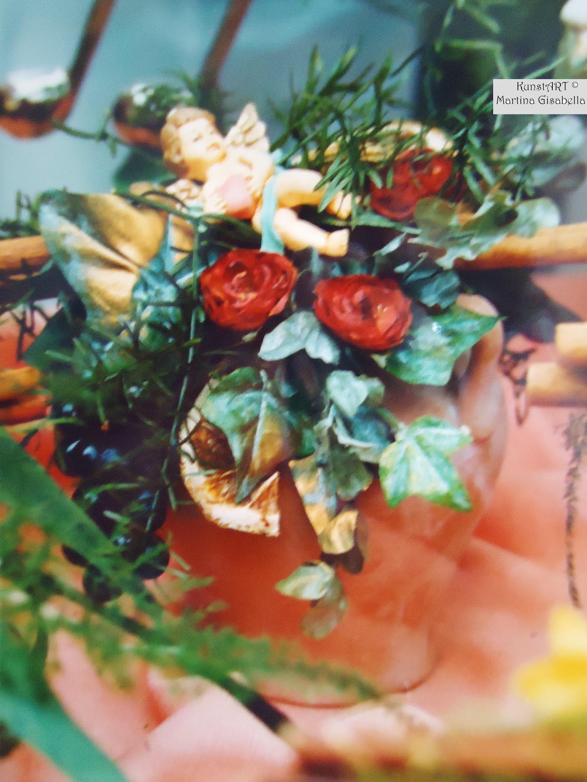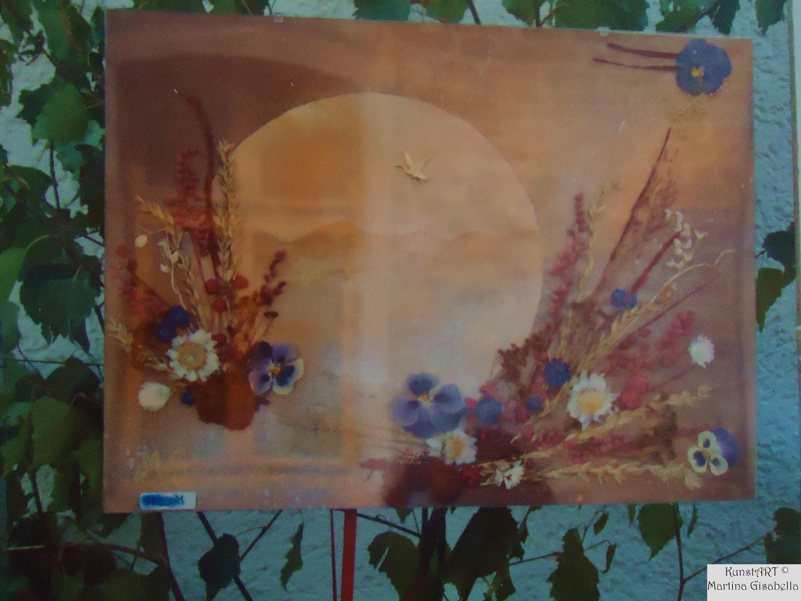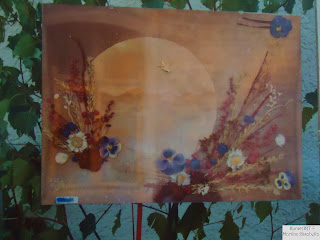 Der Hintergrund ist Aquarellmalerei und teilweise habe ich auch mit Farbspray gesprüht. Zum Schluss wird das ganze noch mit Trockenblumen versehen......teilweise mit selbst gepressten