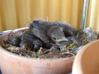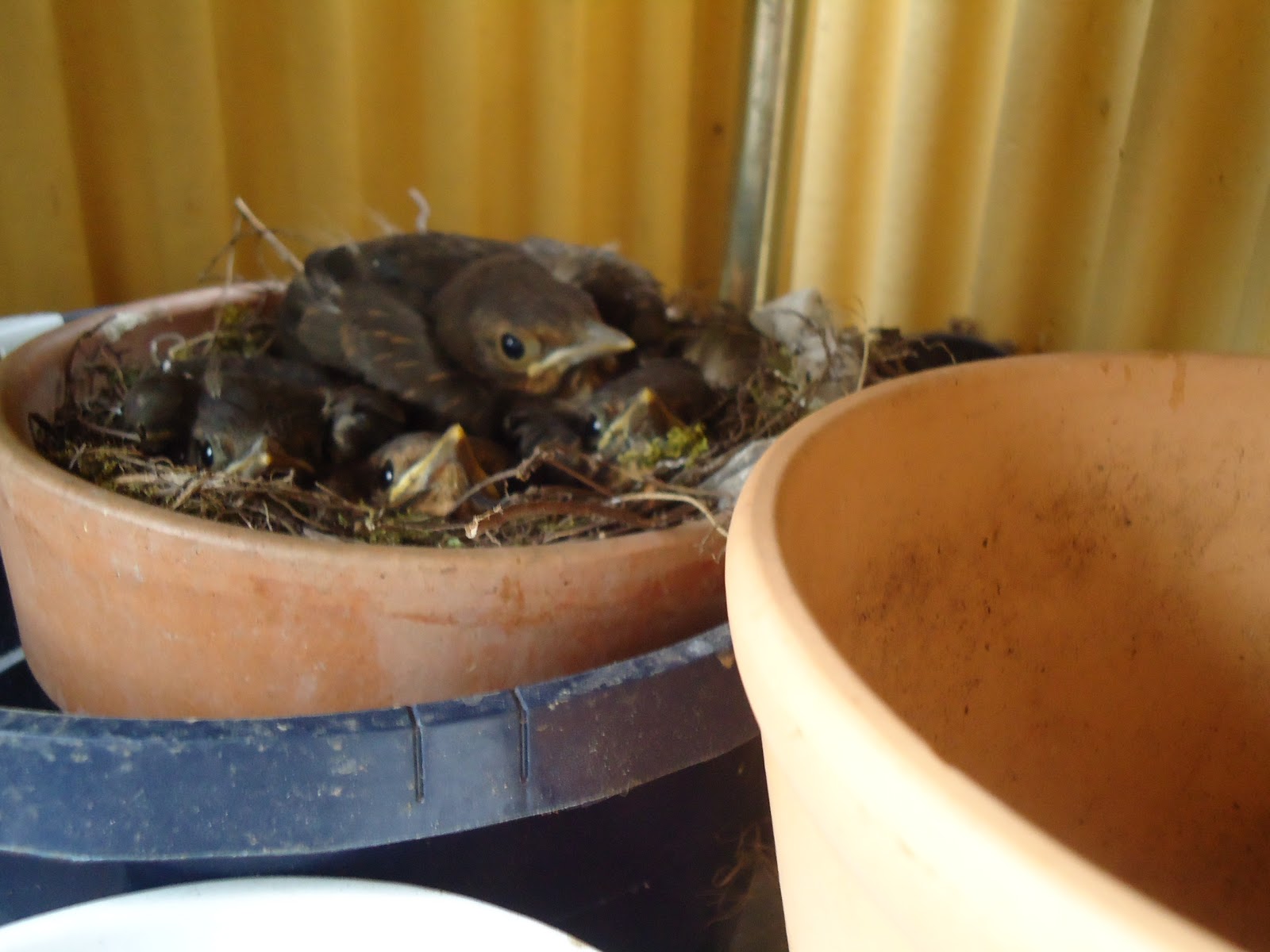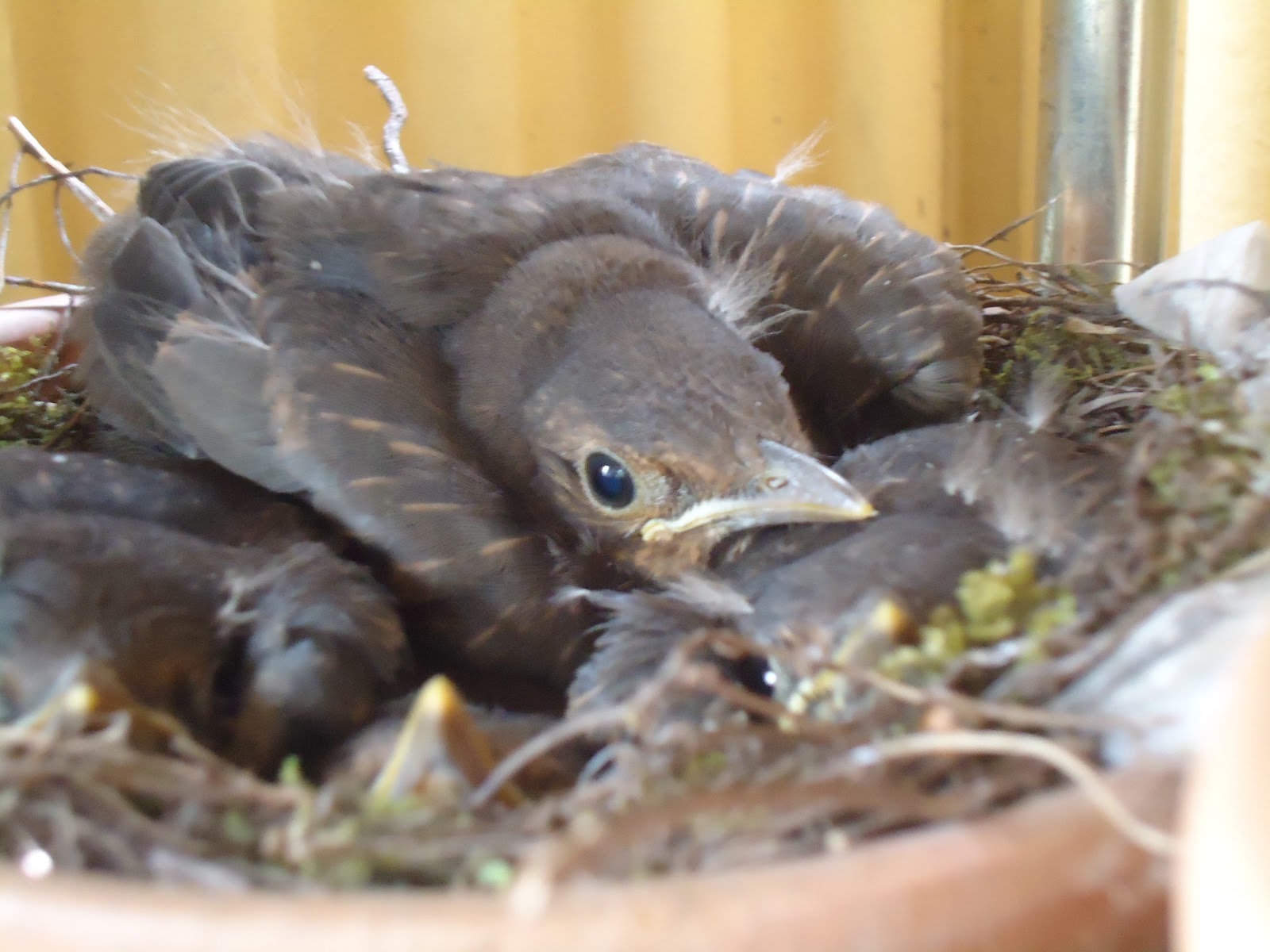 In der Zwischenzeit hat einer unserer Amselkinder das Nest verlassen.