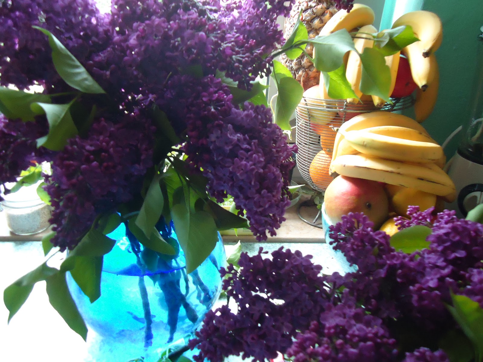 Ein riesen Strauß und er hat sogar für zwei Vasen gereicht und nun duftet mein Wohnzimmer und die Küche ganz betörend nach Flieder....