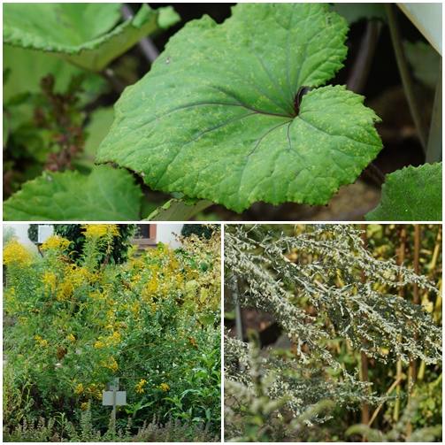 Oben das ist Huflattich, unten rechts Wermut