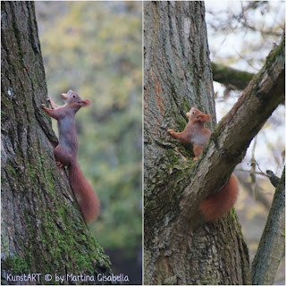 Als ich heute Morgen aus meinem Wohnzimmerfenster sah, sprang doch wieder das süße Eichhörnchen hier rum...