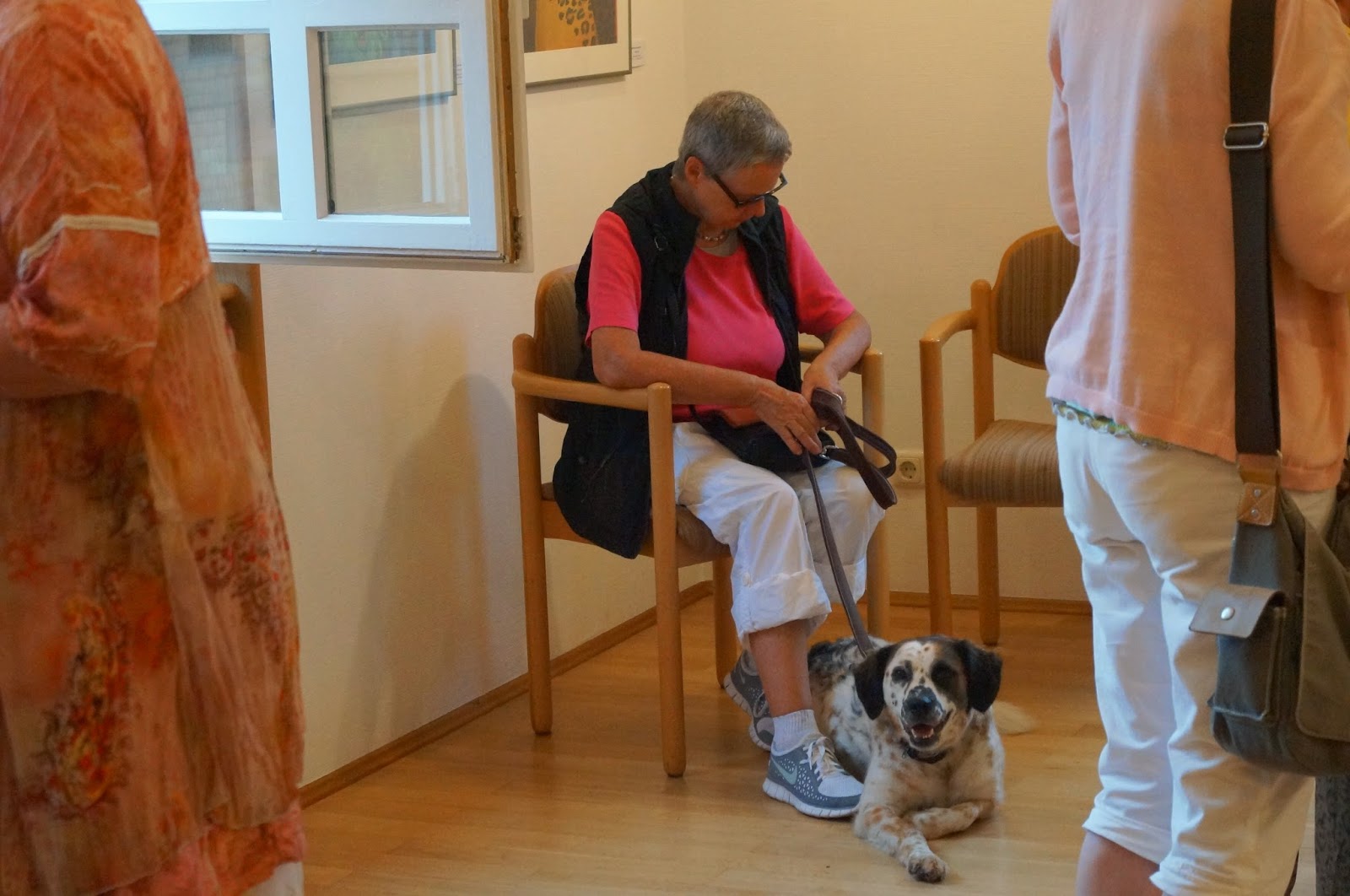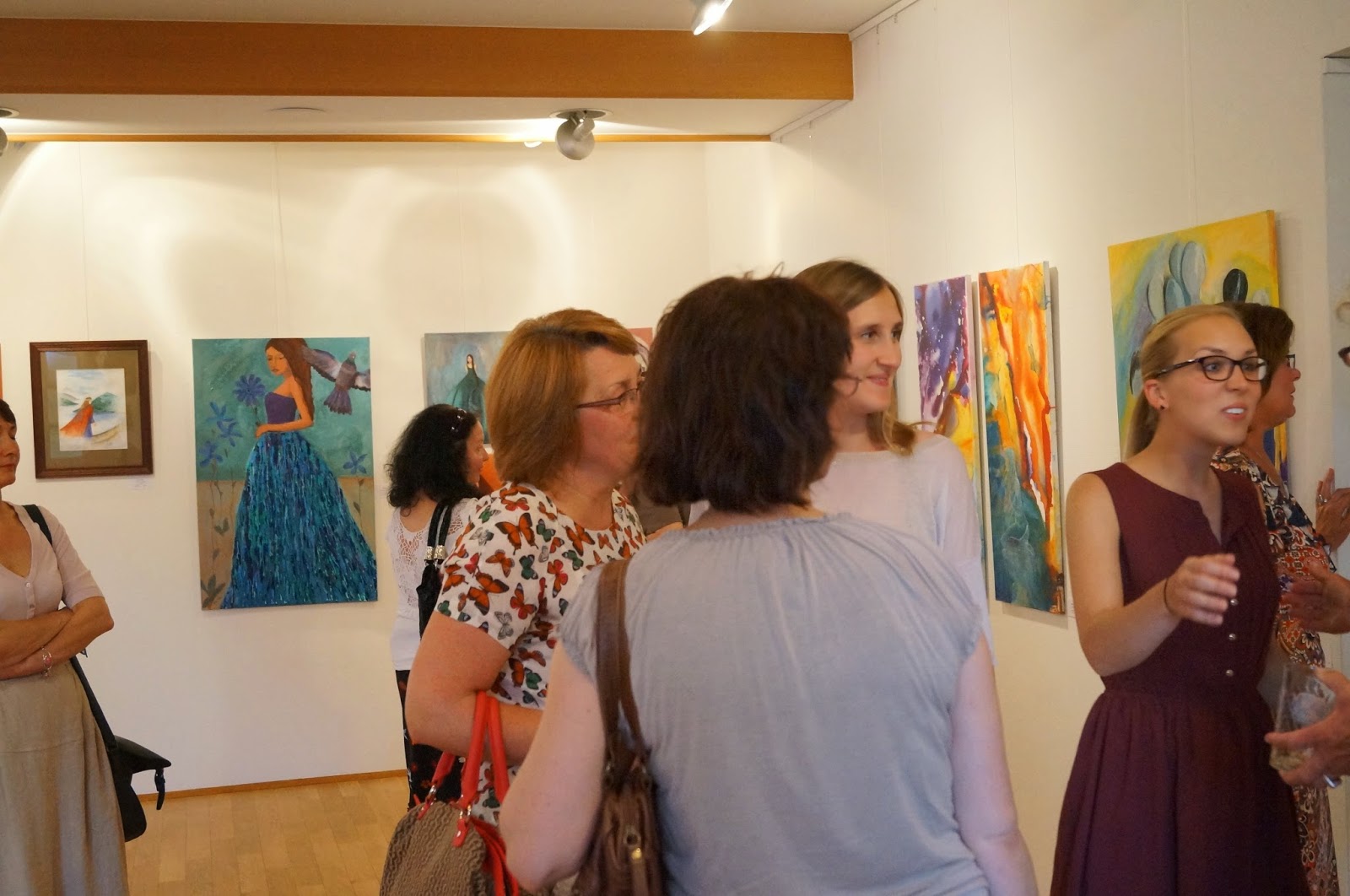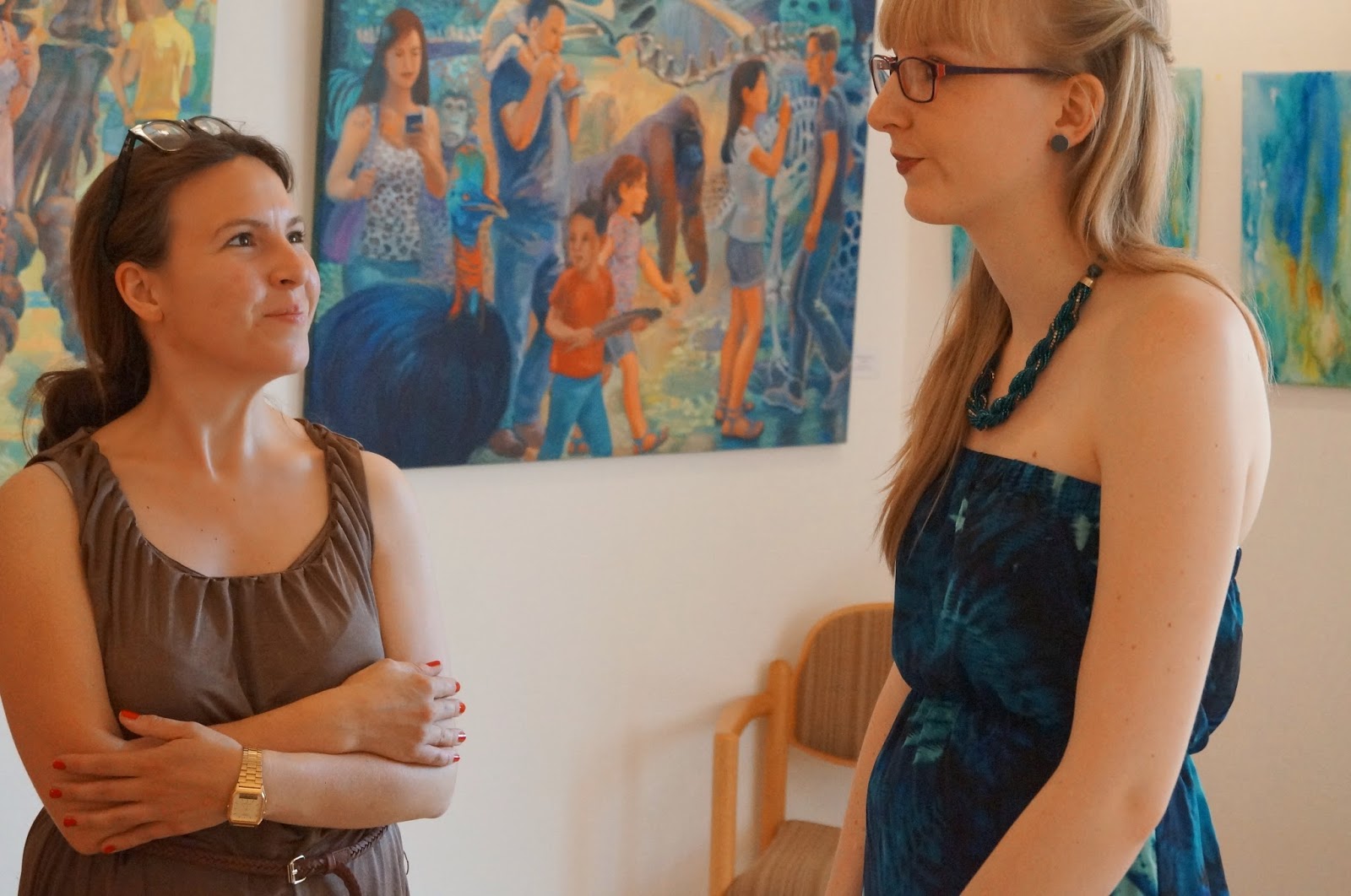 Gestern war unsere Vernissage und wider Erwarten, waren doch viele Leute da. Es war richtig, richtig schön... Das erste Mal auch für mich, dass ich so mit den Leuten in Dialog kommen konnte, sie meine Geschichte zur Entstehung der Bilder wissen wollten und mir auch ihre eigenen Interpretationen verraten haben. Viele nette Gespräche und Kontakte gab es.
