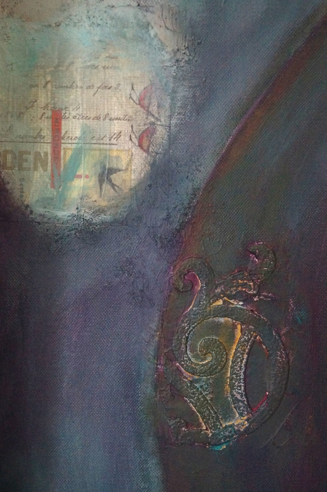 Bisher hab ich Tapeten, Papier und Spachtelmasse verarbeitet. Die Farbgebung ist auch noch nicht endgültig und ich weiß auch noch nicht ob ich vielleicht einige andere Materialien mit einbringe....