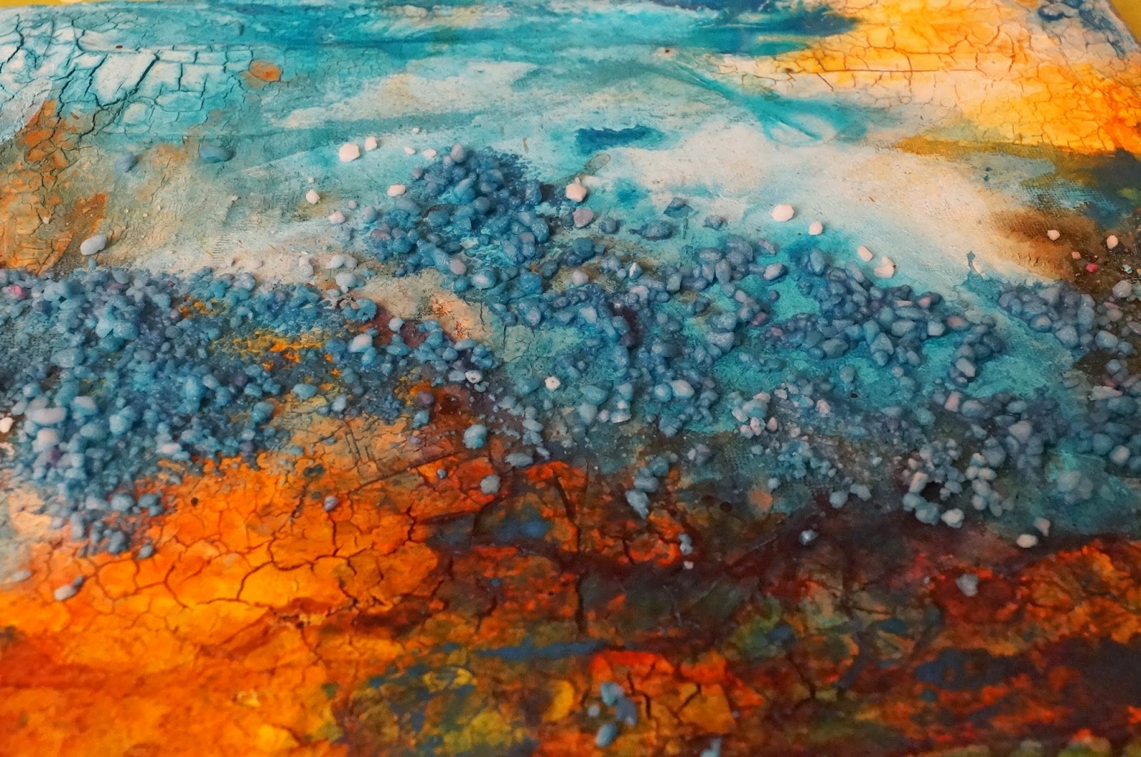 - Mare - Detailansicht Acryl, Seidenmalfarbe, Marmormehl Leinwand 24 x 30 cm |