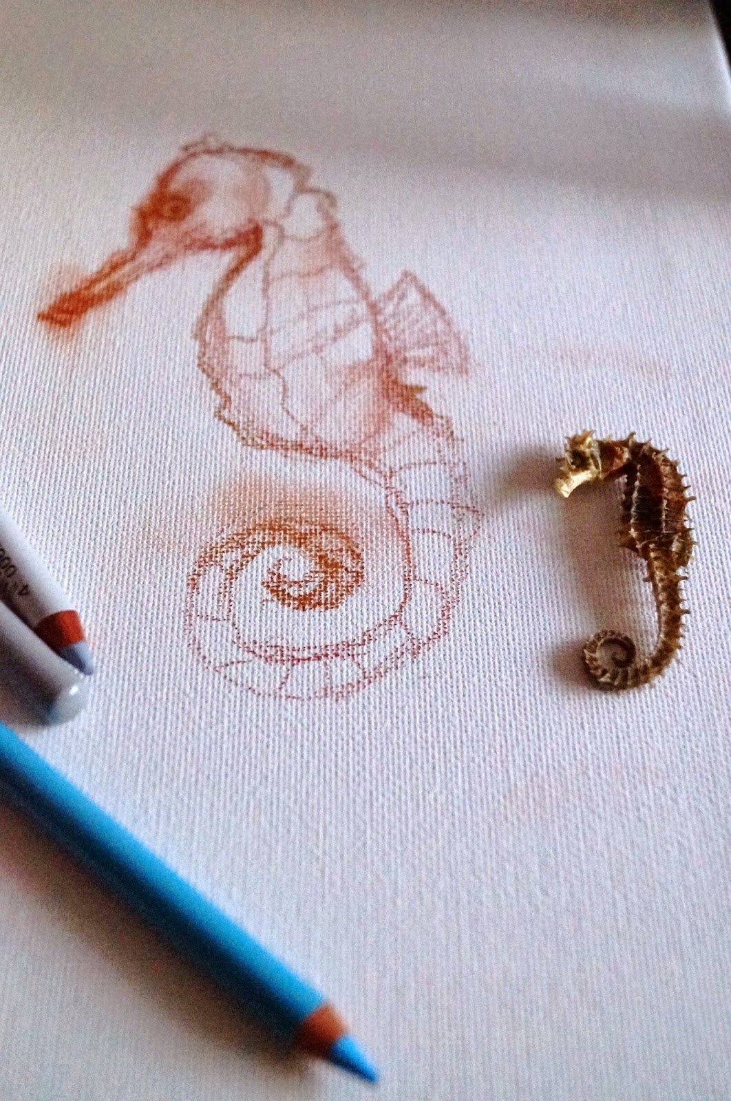 Das abgebildete Seepferdchen hat eine ganz besondere Bedeutung für mich und ist mit vielen Erinnerungen verbunden. Es ist schon sehr alt, ca. 45 Jahre, und erinnert mich immer an meinen Papa. Gefunden habe ich es als kleines Kind am Strand von Neapel und bewahre es seither in einem mindest so altem Täschchen auf.