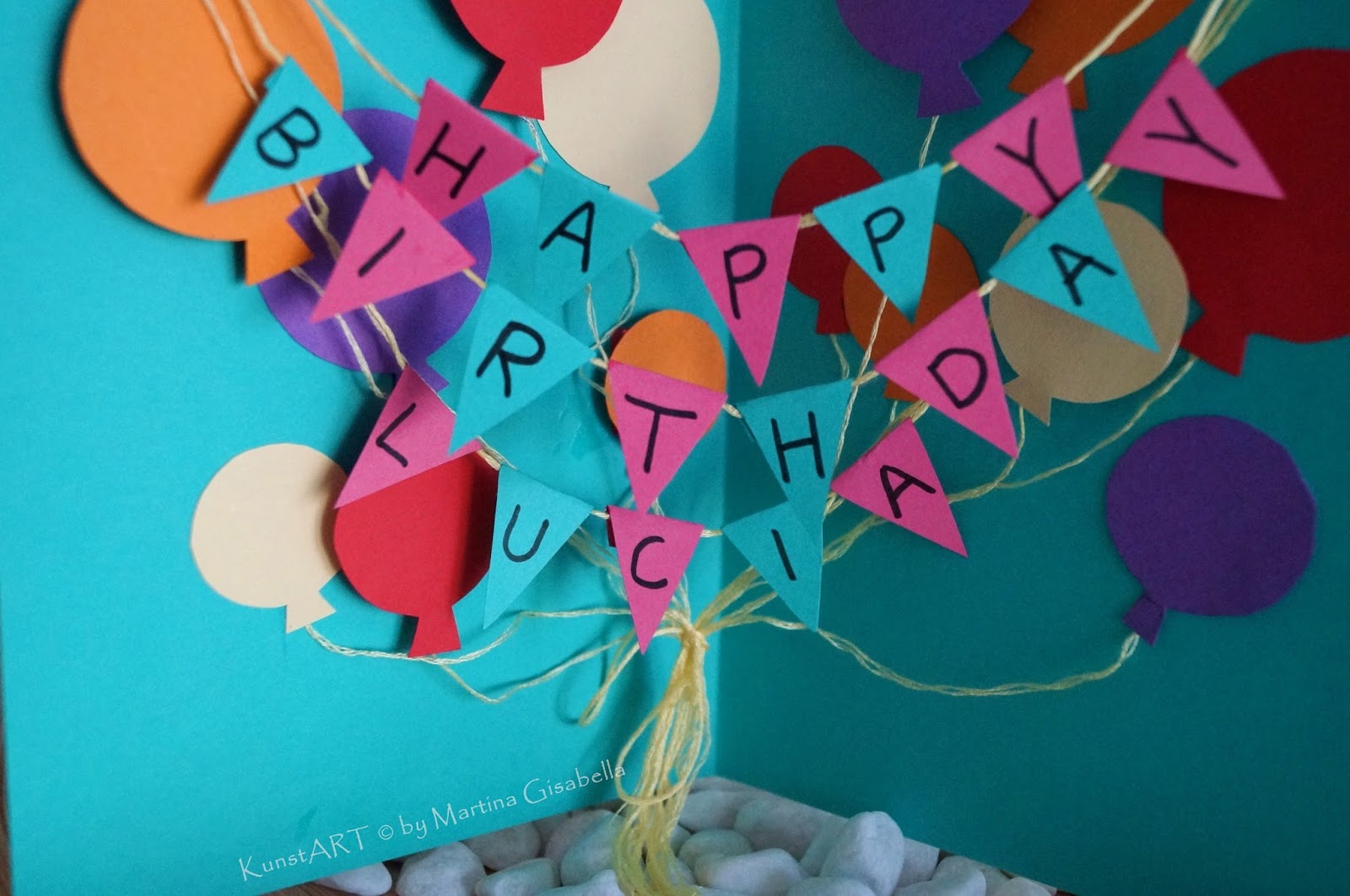 Aus diesem Anlass haben ich und meine Tochter in Gemeinschaftsarbeit eine Geburtstagskarte gebastelt. Die Inspiration dafür habe ich auf Pinterest gefunden..