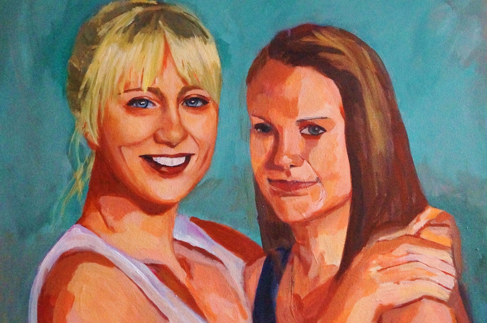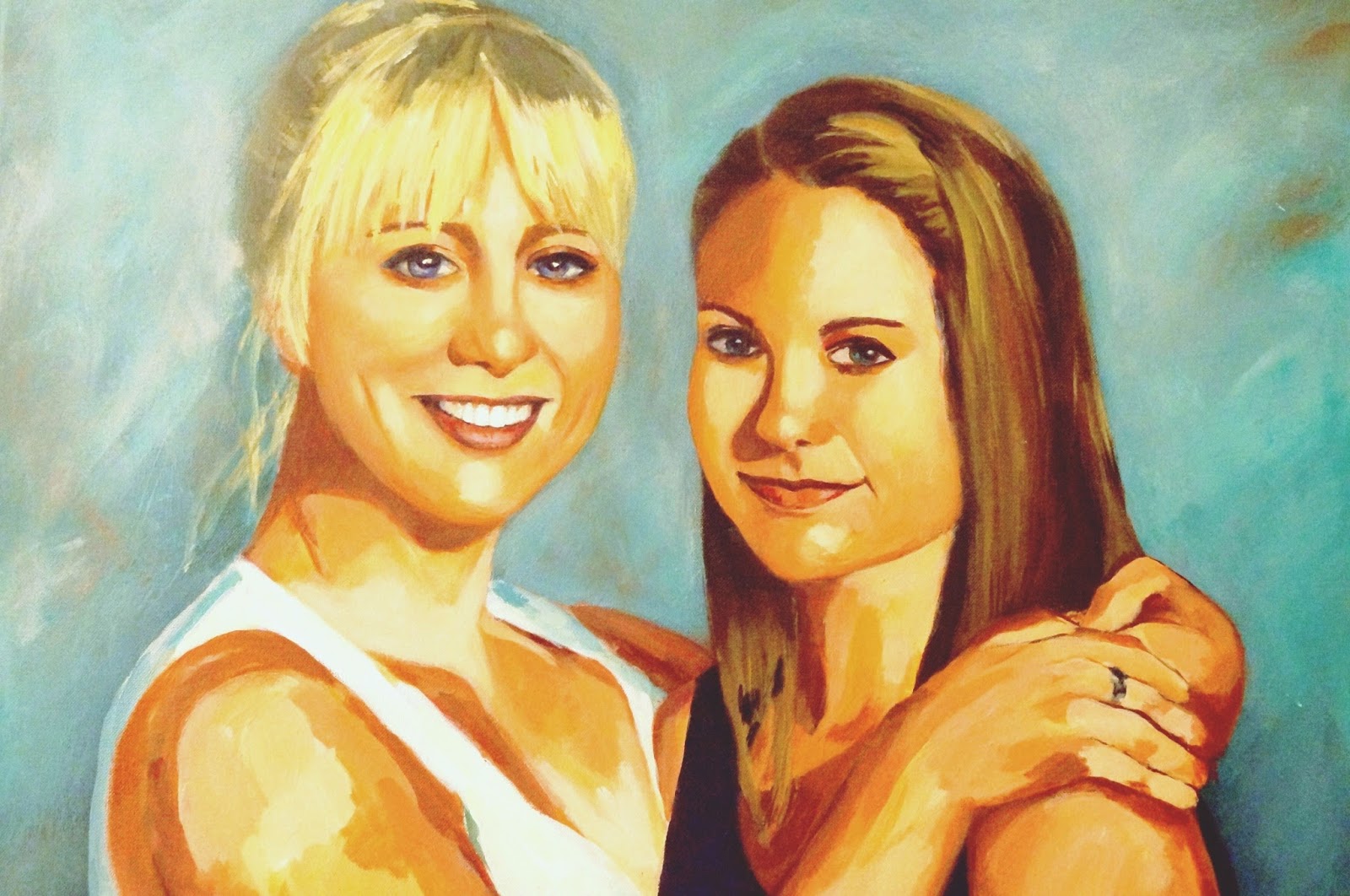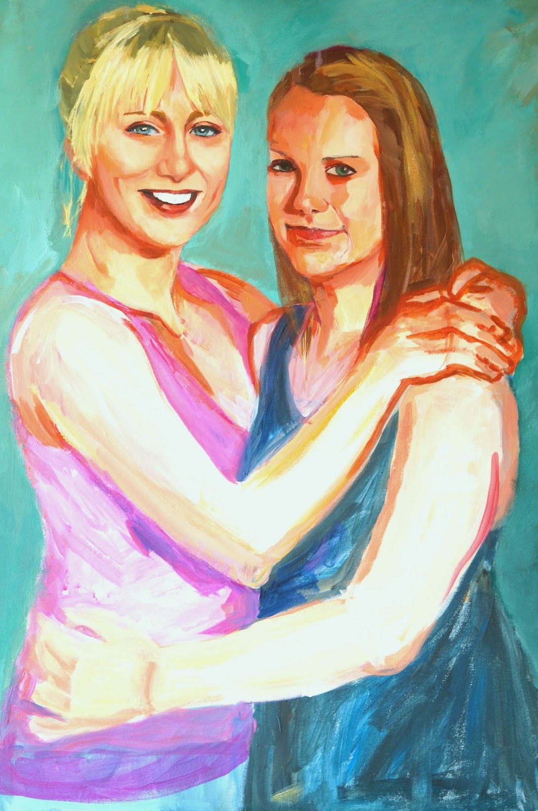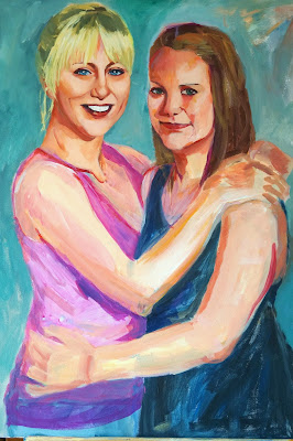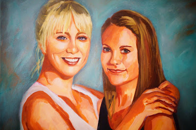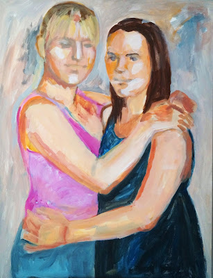 Mein Auftragsportrait nimmt immer mehr Form an. :-) Die Hände musste ich wieder verkleinern....sind riesig geworden und das Auge des linken Mädels muss ich auch noch korrigieren. Ich hab noch ein bisschen Arbeit vor mir....