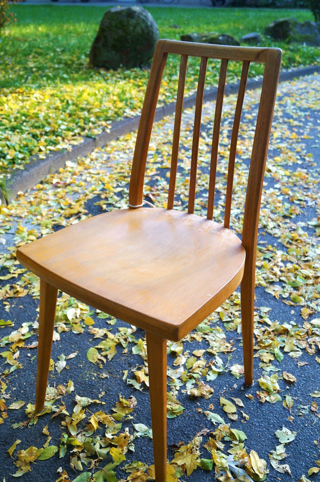 Ich bin mit dem Ergebnis nicht 100% zufrieden. Die Farbe blätterte an der Lehne an zwei Stellen ab. Nochmal streichen, das Gleiche wieder, nochmal recherchieren, Isolierspray kaufen, an besagte Stellen sprühen und nochmal streichen. Einige Tage später und 5 grauen Haaren mehr auf dem Kopf, bin ich mir nicht sicher ob es jetzt ok ist.... Klarlack kommt noch drüber, da ein Stuhl doch stärkerer Beanspruchung ausgesetzt ist, und sollte mir das Endergebnis nicht gefallen.......dann kommt die Farbe wieder runter und ich fang von vorne an...
