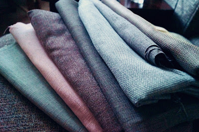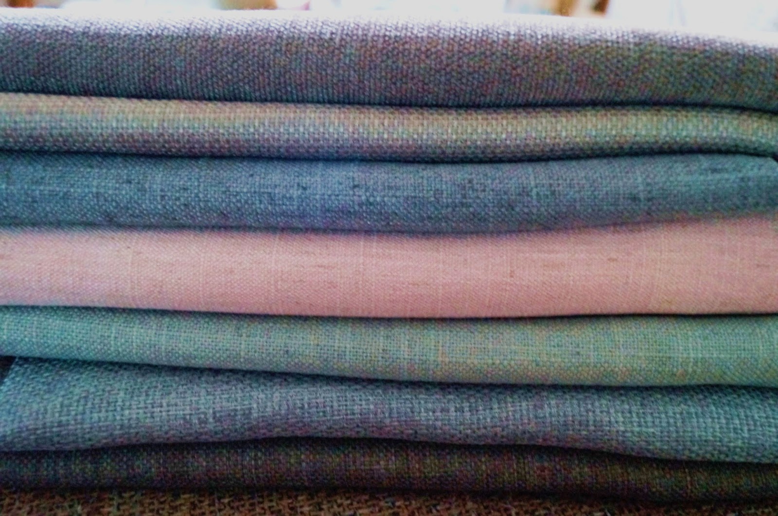 Leider sieht man die Farben nicht so schön auf den Fotos, es sind Pastellfarben, ein etwas groberer und festerer Stoff und es sollen Kissen mit Paspel, für die graue Couch werden.