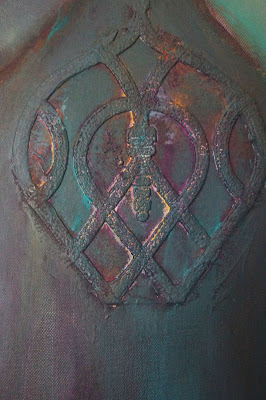 Bisher hab ich Tapeten, Papier und Spachtelmasse verarbeitet. Die Farbgebung ist auch noch nicht endgültig und ich weiß auch noch nicht ob ich vielleicht einige andere Materialien mit einbringe....