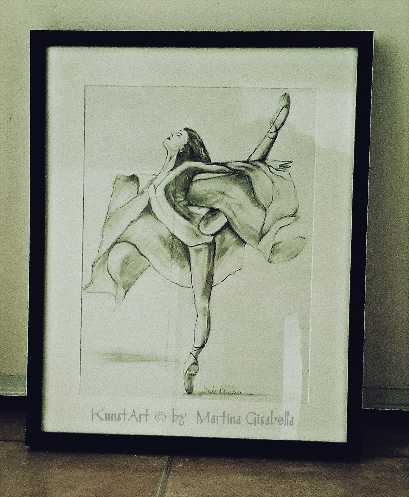 Einer der besten Freundinnen meiner Tochter ist 30 geworden und ich hatte die Ehre die Torte zu backen. Da sie Ballerinas liebt hat sie von mir noch eine gerahmte Bleistiftzeichnung geschenkt bekommen.