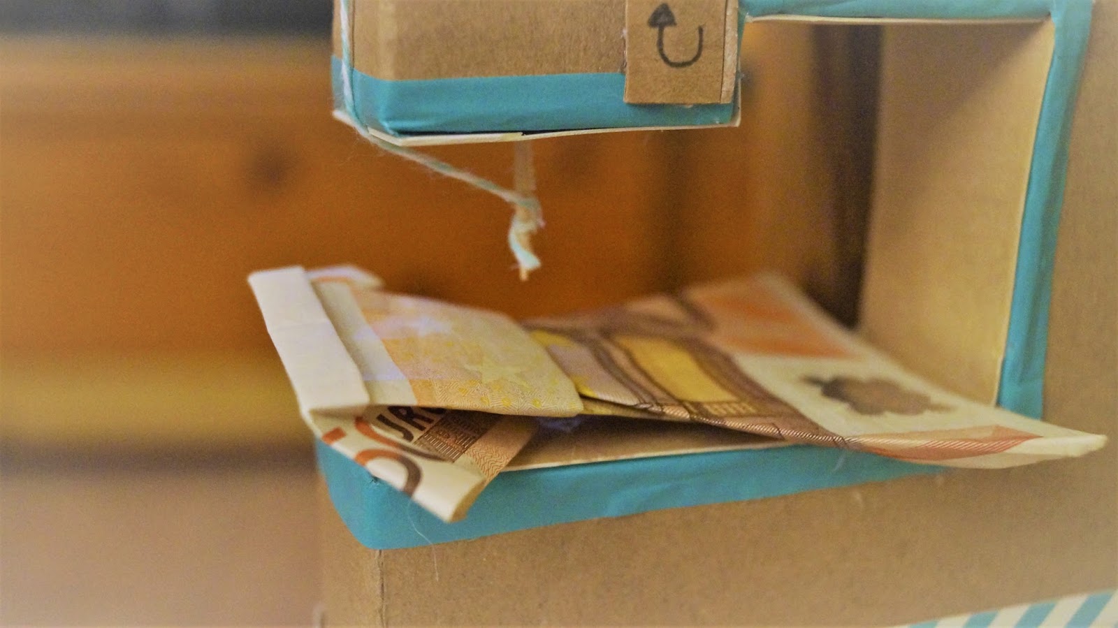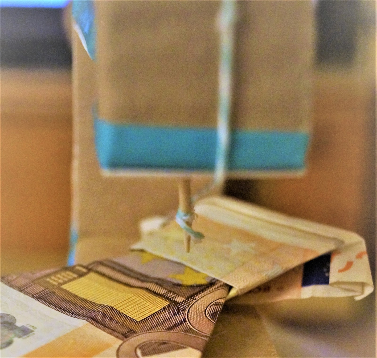 Die Geldscheine sind oben zu 2 Hemden geknickt,