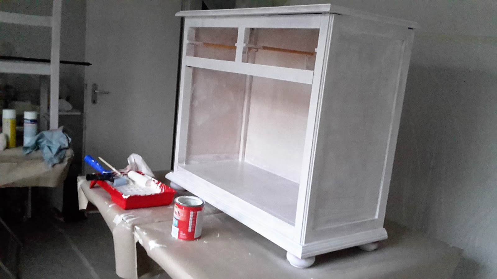 Ich hatte nämlich davor schon meinen Werktisch fürs neue Zimmer gestrichen und der war vorher blau. Angeschliffen habe ich ihn aber nicht die ganze Farbe runtergeschliffen, wo ich erst dachte ich müsse das machen....aber es hat so gut funktioniert. Bilder gibt es bald davon...