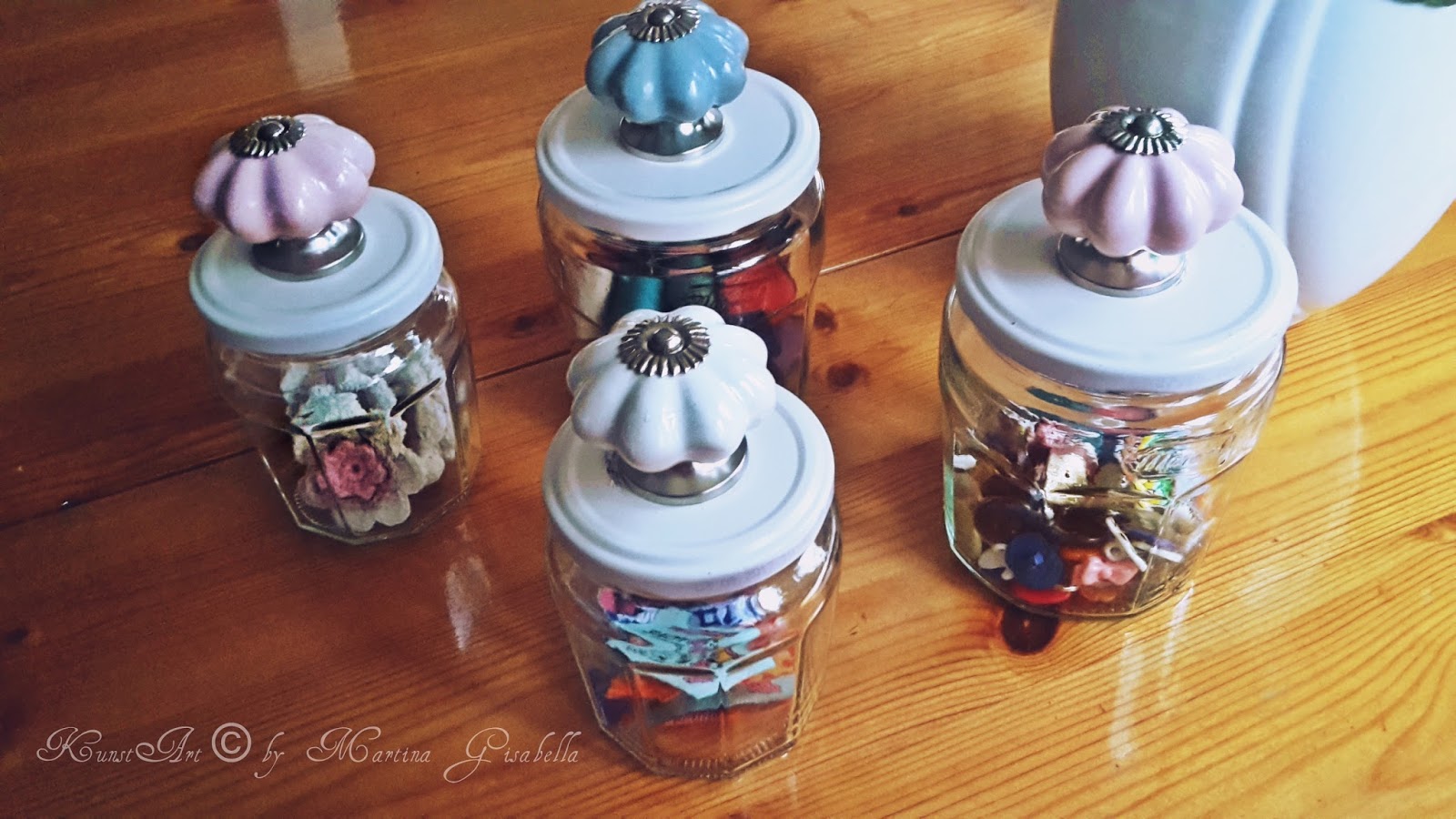 Deckel abschrauben, in der Lieblingsfarbe einsprühen, trocknen lassen und dann mit dem Hammer in die Mitte ein Loch klopfen mit dem dicken Nagel, Möbelknopf anschrauben......fertig. :-)