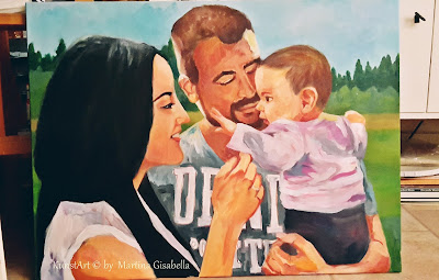 ......meine Auftragsarbeit, ein Familienportrait, nimmt Gestalt an. Das erste Mal ein Baby zu malen ist an und für sich schon eine Herausforderung für mich, aber Hände.....waaaah......da darf ich noch üben, üben, üben.... :-D